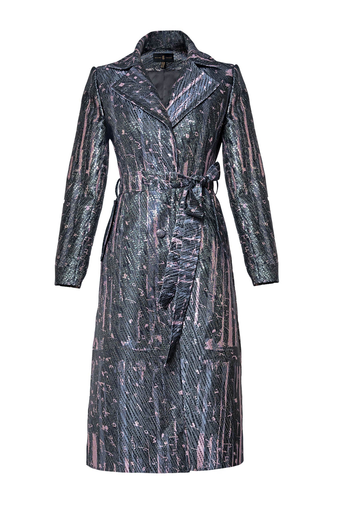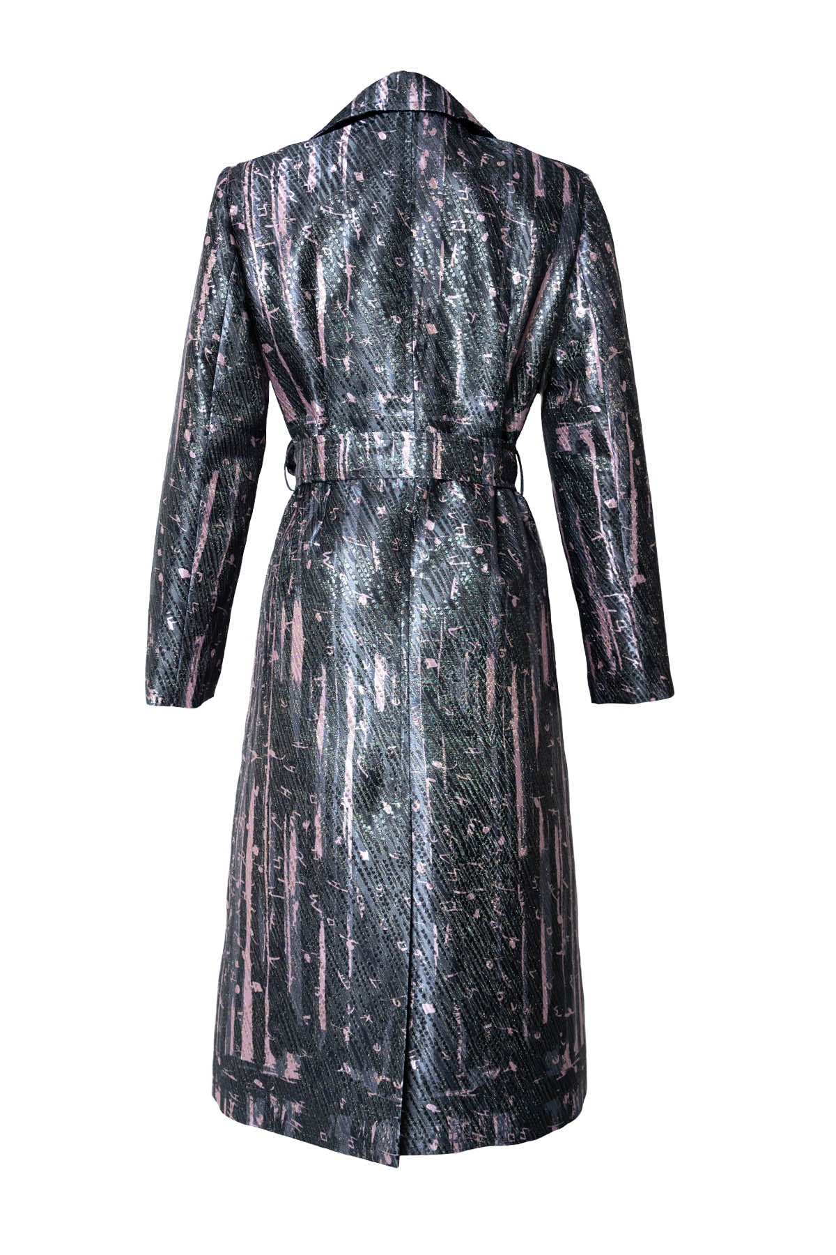 Pink Grey Bosančica Brocade Lapel Trench Coat