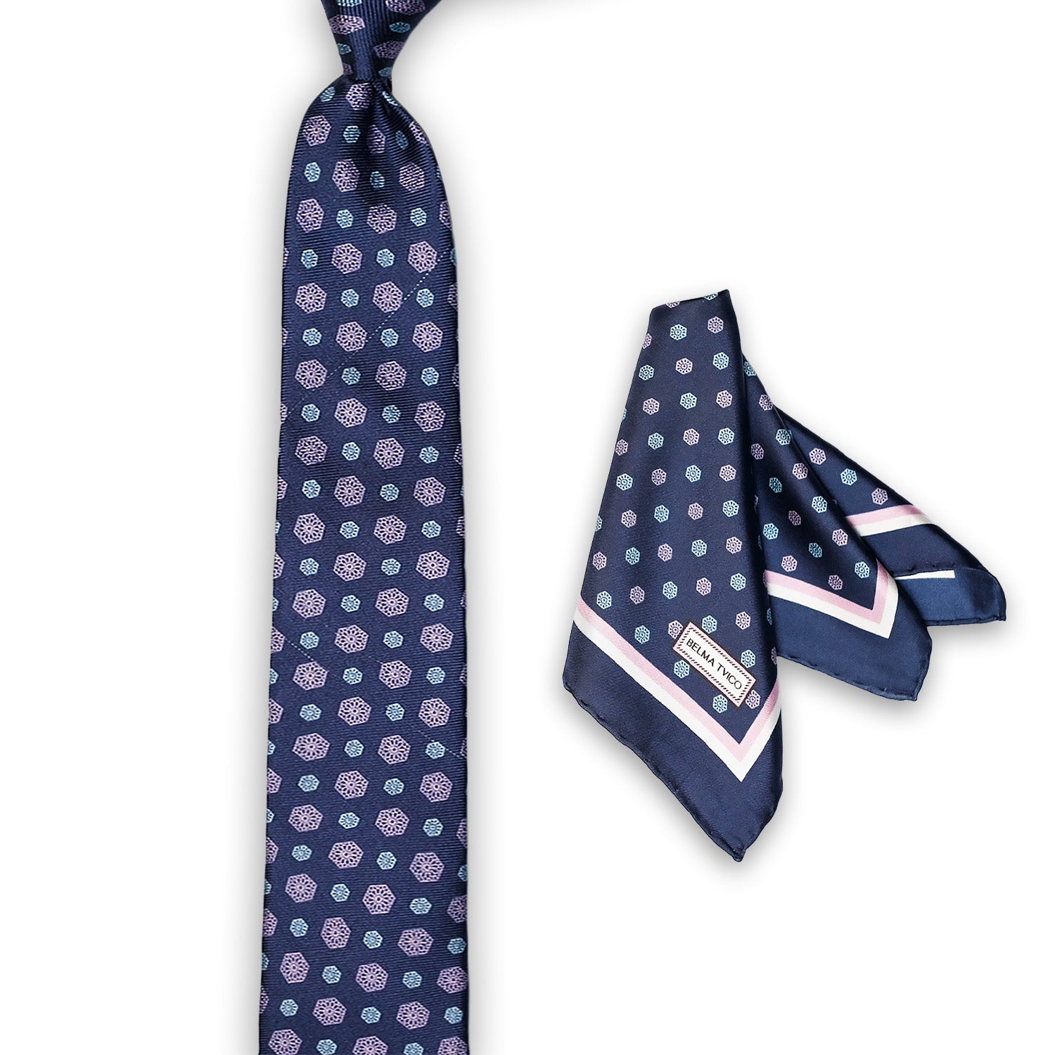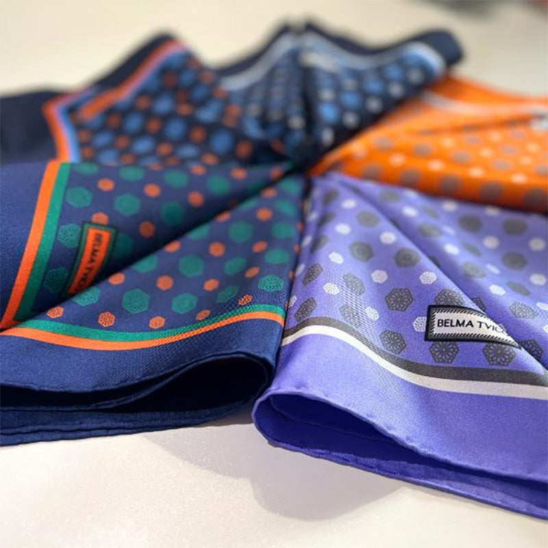 The exclusive Belma Tvico silk tie and pocket square sets draw inspiration from the iconic Sarajevo City Hall facade. Featuring intricate floral patterns, they elegantly blend heritage elements into timeless designs suitable for men across the globe.