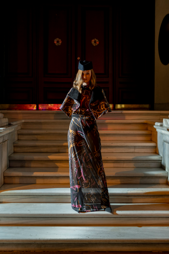 Belma Tvico presents Poetry in Motion, setting the visual bar higher season after season. This collection is the ne plus ultra, an unwavering powerful vision – quiet, yet palpable. The stunningly flamboyant garments prove the rich relationship between the designer's creative vision and fashion, framed and shaped by the words, work, and life of Belma Tvico who is both ancient and contemporary in her vision.