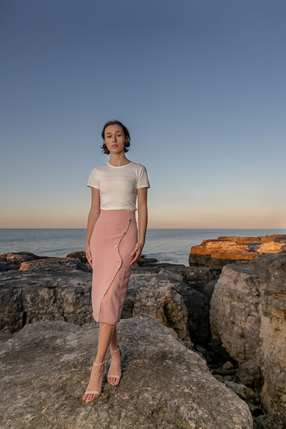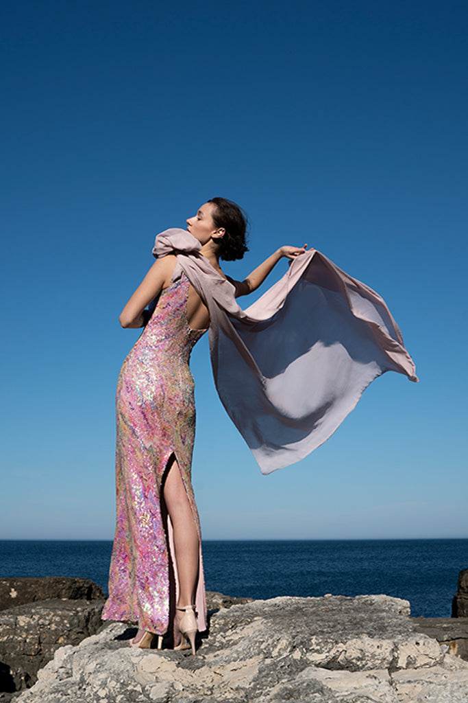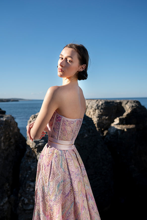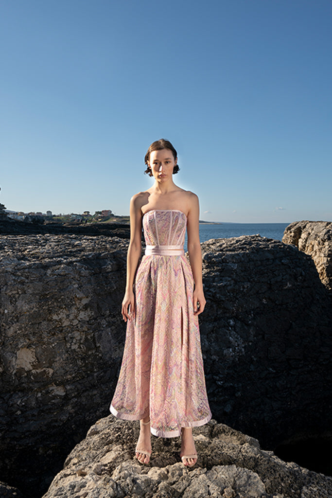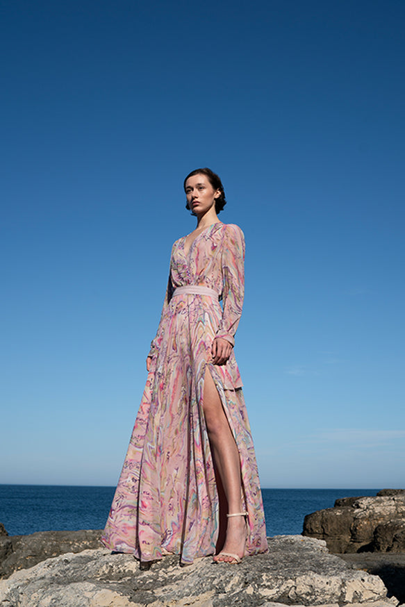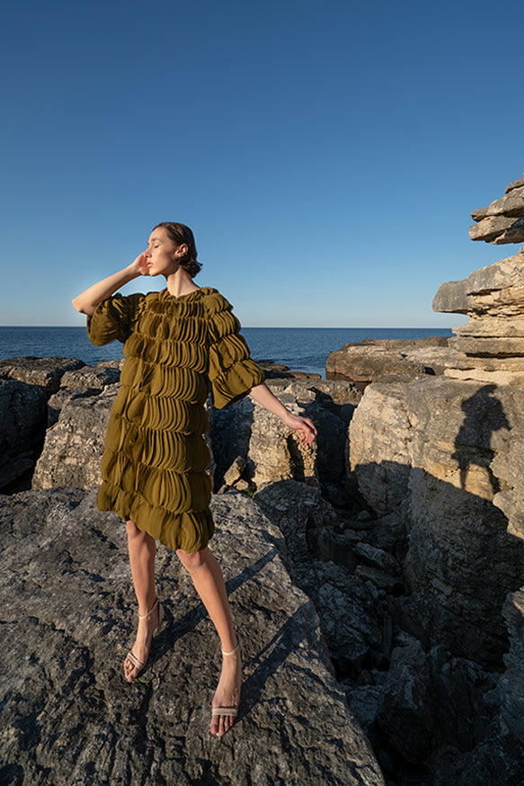 Belma Tvico Spring/Summer 2021 collection is focused on daintily printed dresses, ruffled separates, and dream-like classics. Strikingly chic in its simplicity, the collection celebrates Joy. The designer’s unique creative vision can be read into the clothes, but the most instructive clue to decoding it comes from blossoming of traditional shapes of Bosančica, the medieval Bosnian alphabet that acts as a connecting thread throughout her work.