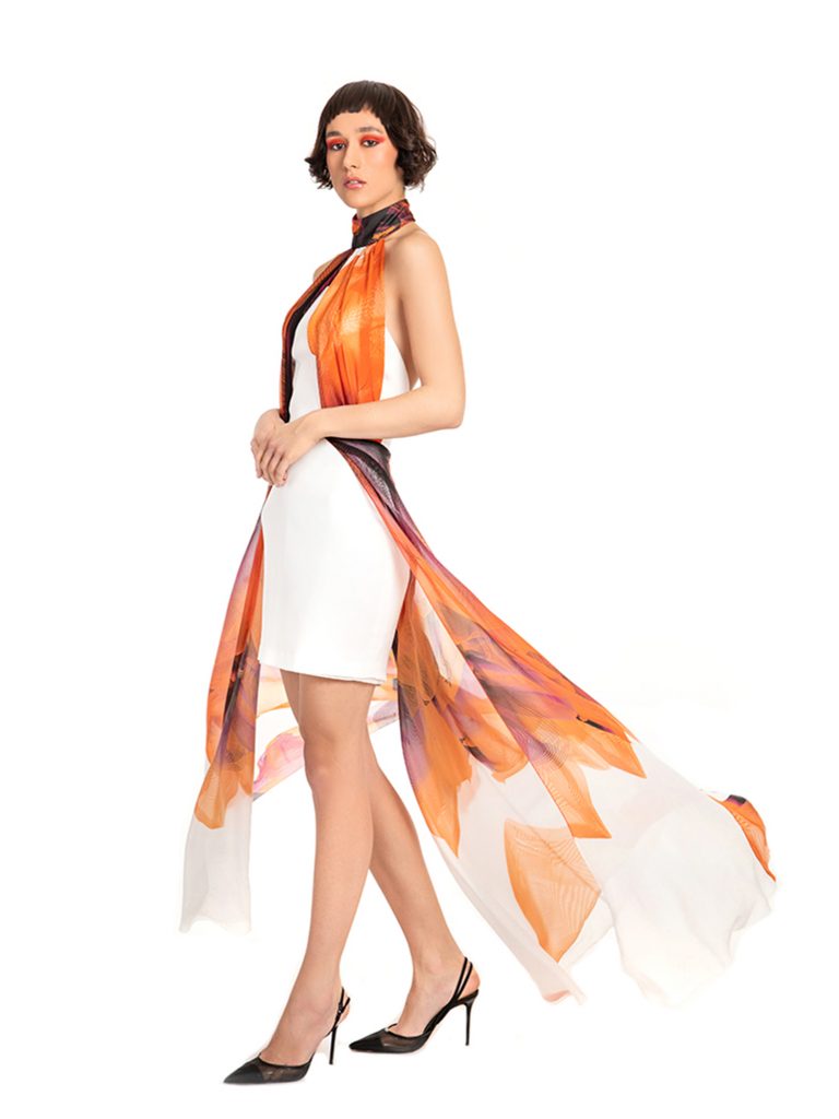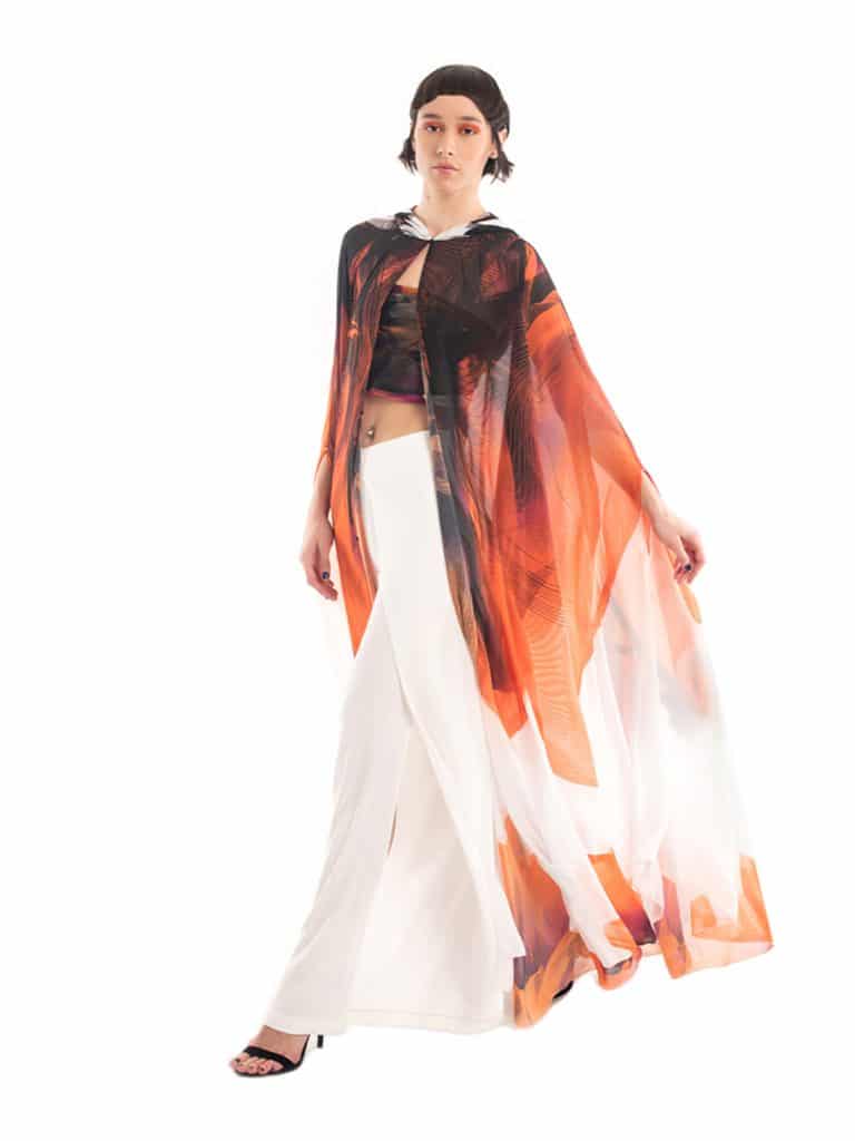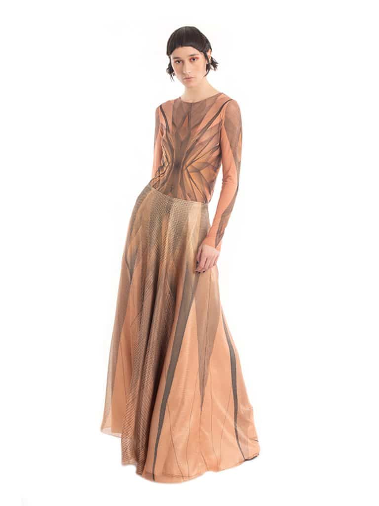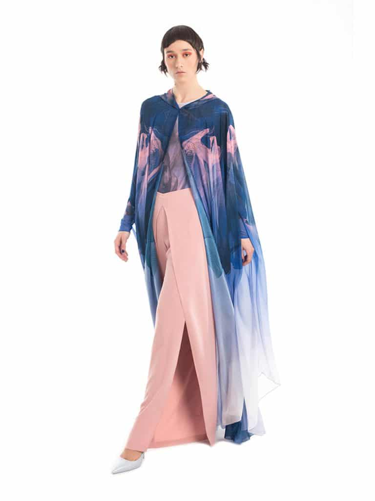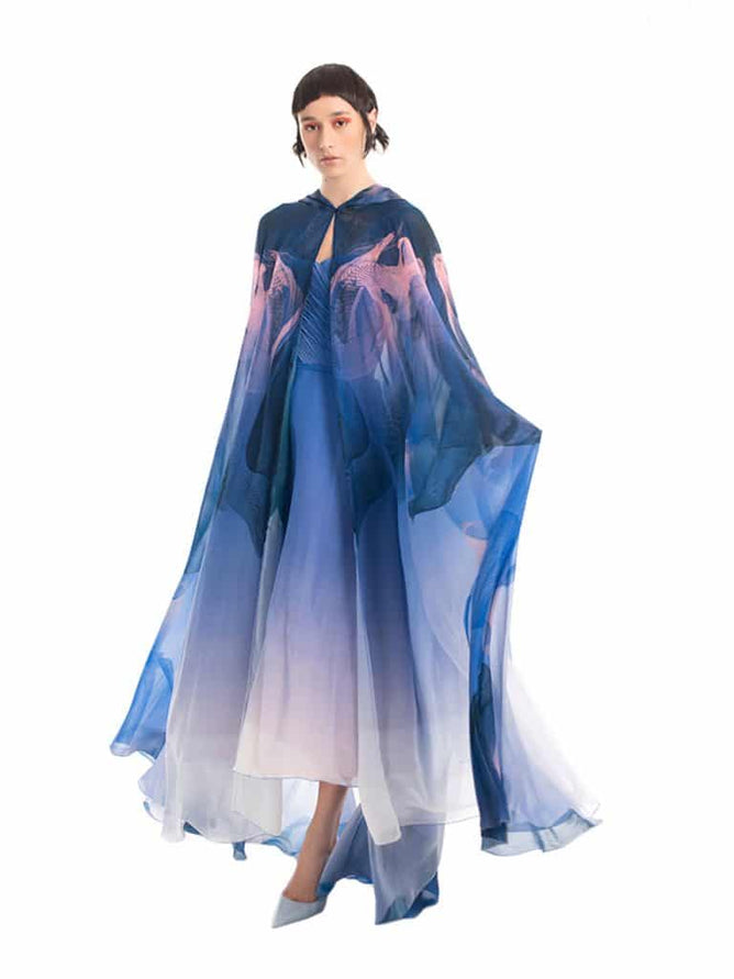 Belma Tvico has structured the Spring/Summer 2022 collection in several acts, taking up the theme of rebirth and art. At its core, the Metamorphosis revolves around the four elements of life- water, air, earth, and fire - and the concept of their cyclic renewal. This collection, like no other before, uncovers her fearlessness and a breakthrough aesthetic. It is an inventive body of work.