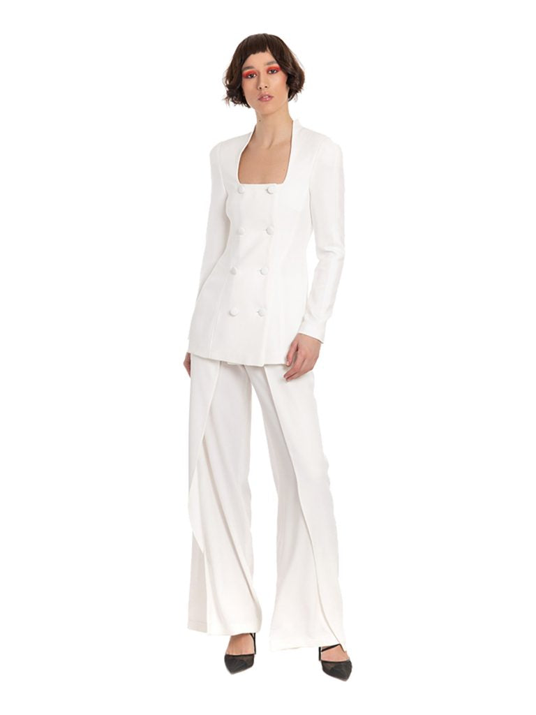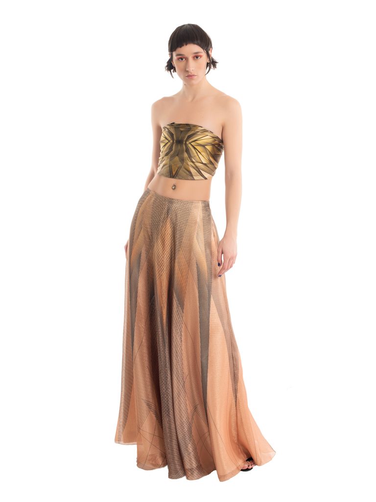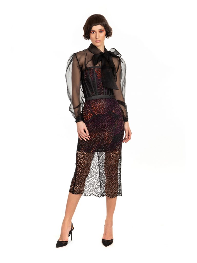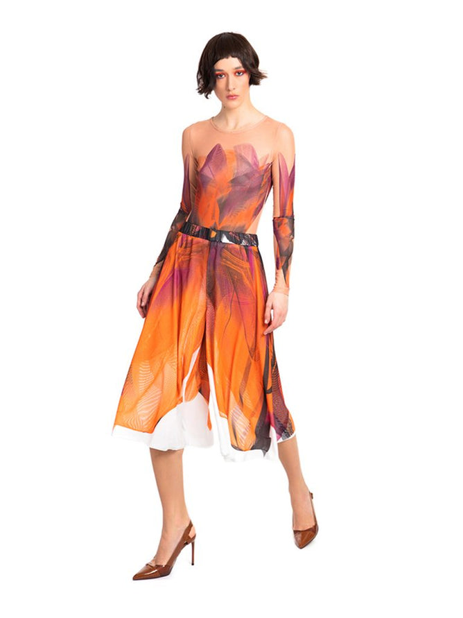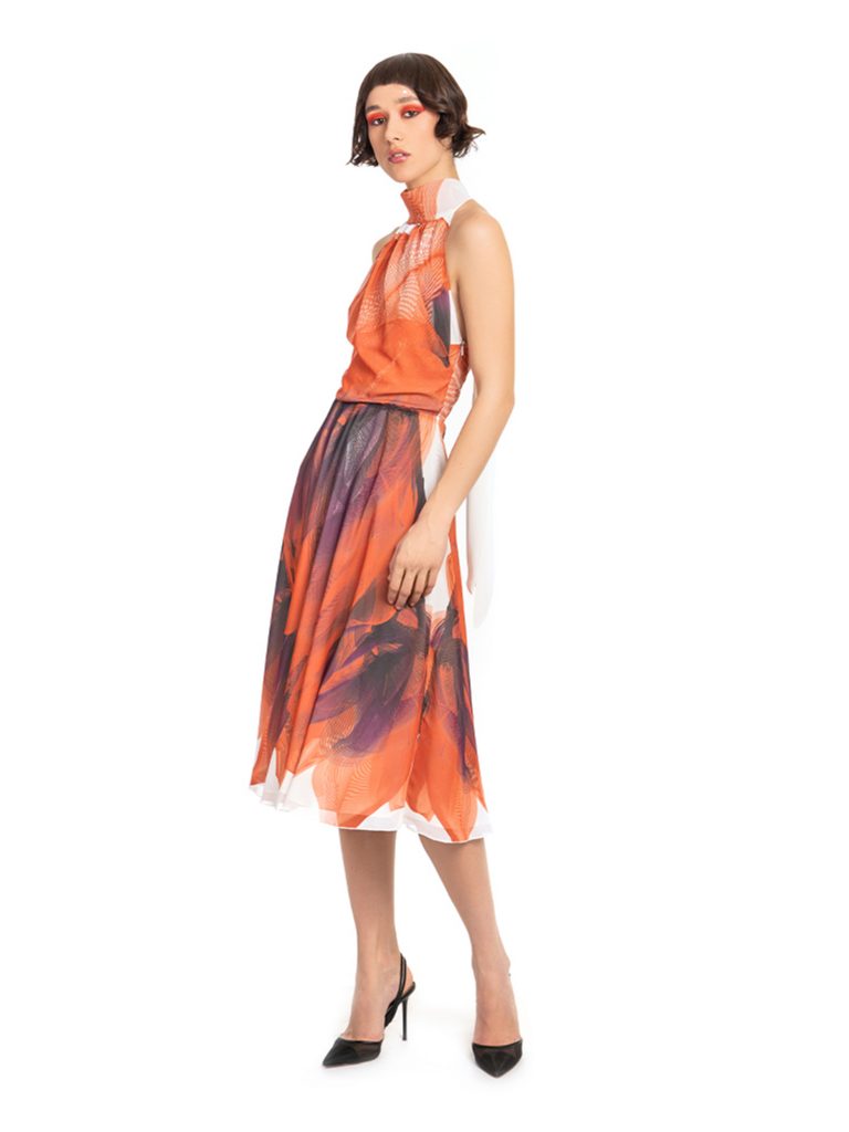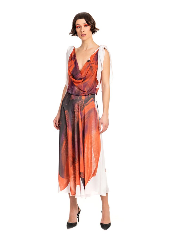 Belma Tvico has structured the Spring/Summer 2022 collection in several acts, taking up the theme of rebirth and art. At its core, the Metamorphosis revolves around the four elements of life- water, air, earth, and fire - and the concept of their cyclic renewal. This collection, like no other before, uncovers her fearlessness and a breakthrough aesthetic. It is an inventive body of work.