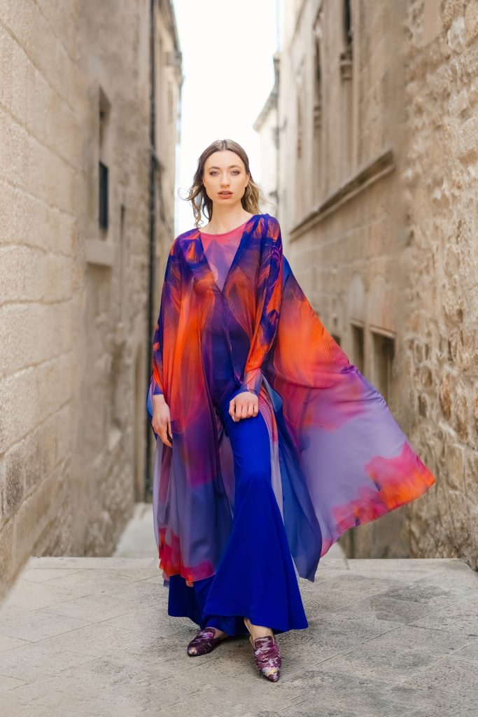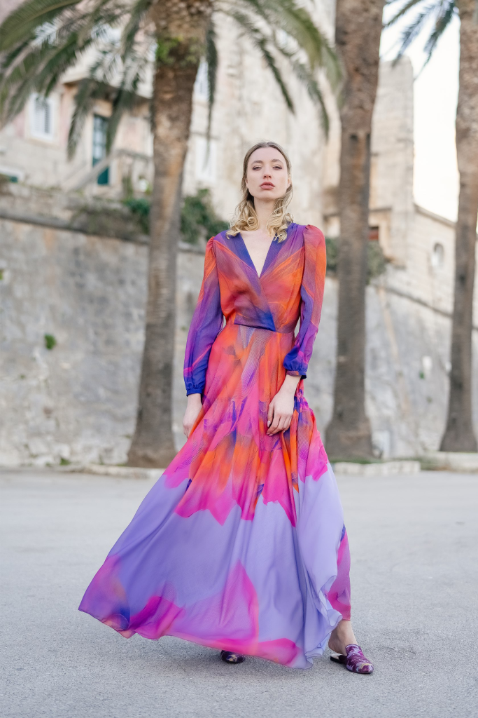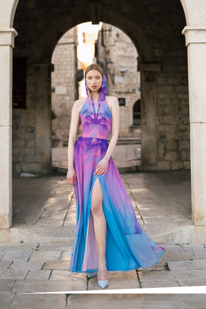 How long does an emotion last? How long do dreams last? Can light be captured indefinitely? Is there a finite number of colors? These are just some of the questions that guided Belma Tvico through the process of creating her new Spring/Summer 2023 collection. Return to Sunset is more than a fashion collection. It is a kind of combination of sonnet, ode, and elegy.