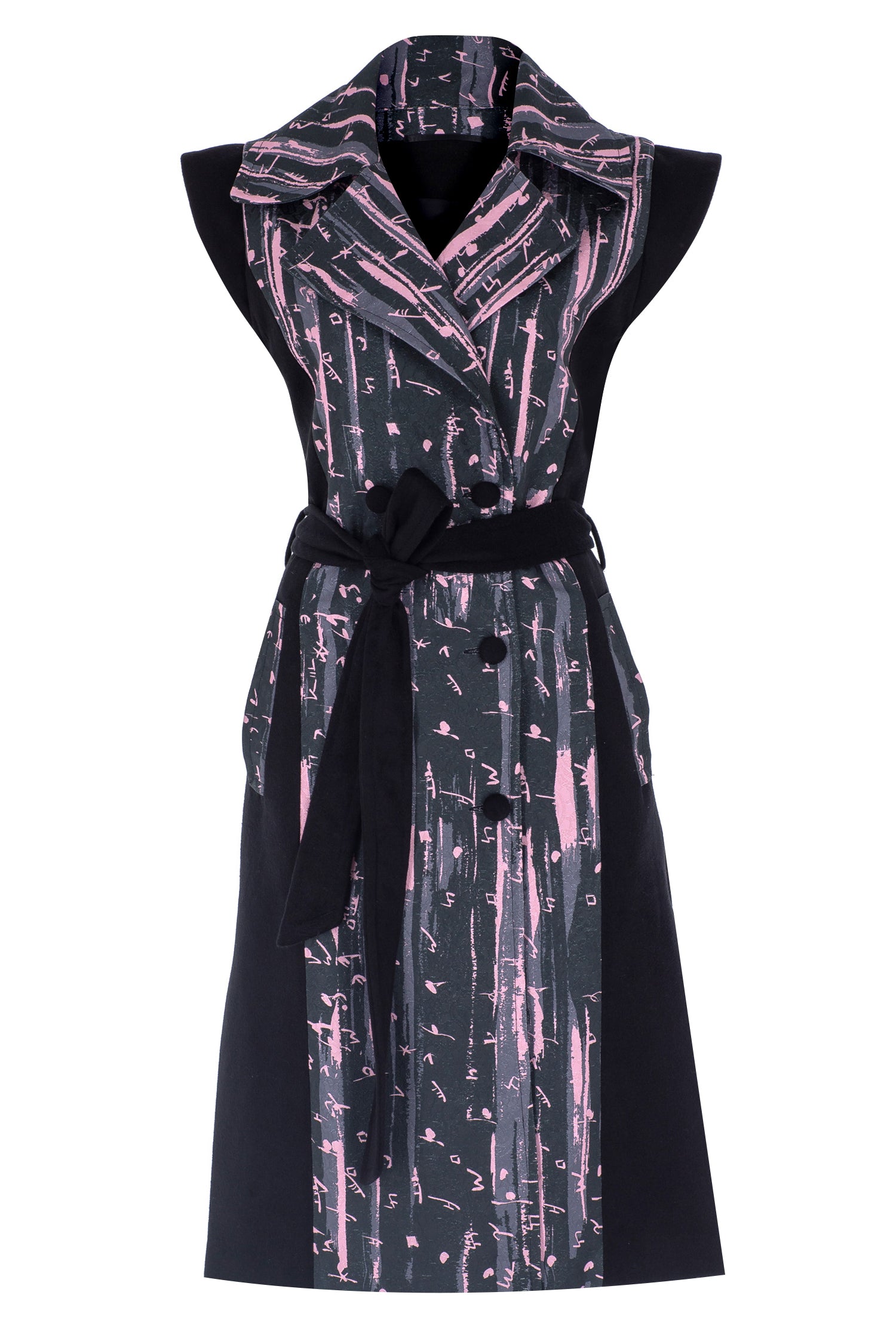 Black Pink Bosančica Wool Brocade Sleeveless Coat